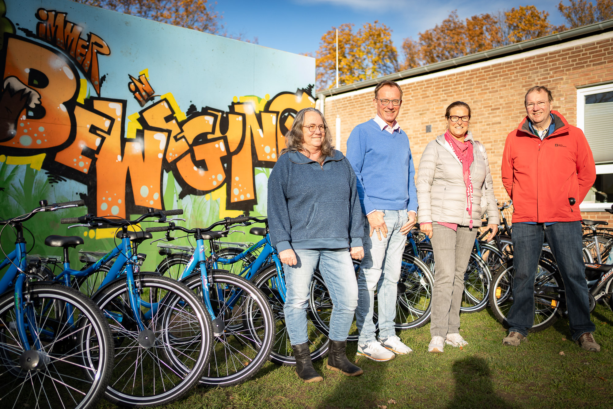 mit dabei – um sich selbst ein Bild vom Projekt zu machen und die neue Fahrradflotte symbolisch an Maria im Walde zu übergeben.
